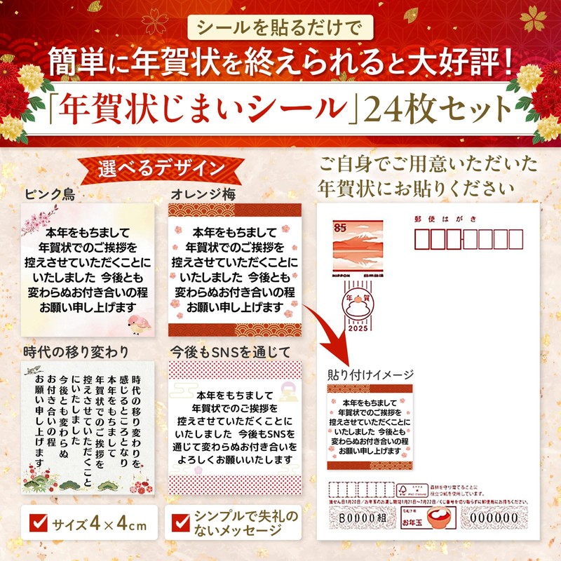 - Easy and Hassle-Free: Just attach the sticker to the New Year’s postcard and you will be able to smoothly inform your recipient you will no longer be sending postcards with these farewell valedictions(English language not guaranteed).