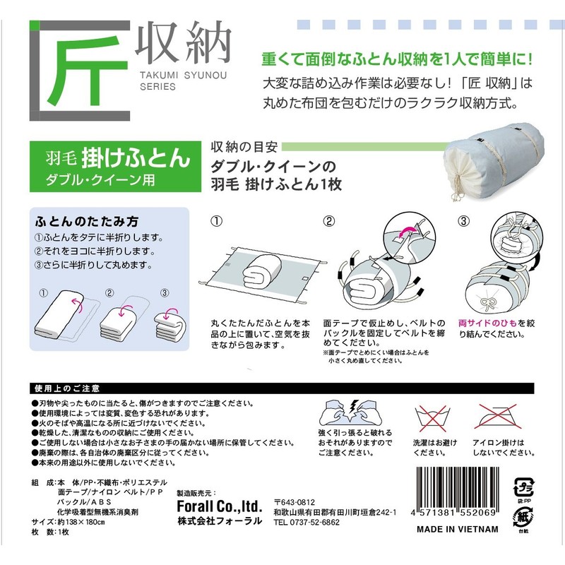 Takumi Storage 5206 Easy to Wrap Futon Storage, For Down and Comforter, Double and Queen