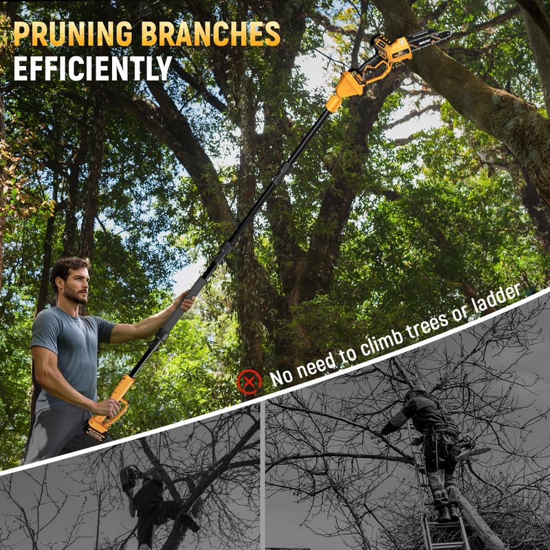 - [2-IN-1 Pole Saw & Mini Chainsaw] Combination of a high reach pole saw and 8-inch portable electric chainsaw, providing the versatility to trim low branches or work on tall trees with the extension rods. Effortlessly trim trees with our multifunctional pole saw, designed for long-reaching capabilities. Suitable for gardening, landscaping, tree maintenance, outdoor use.