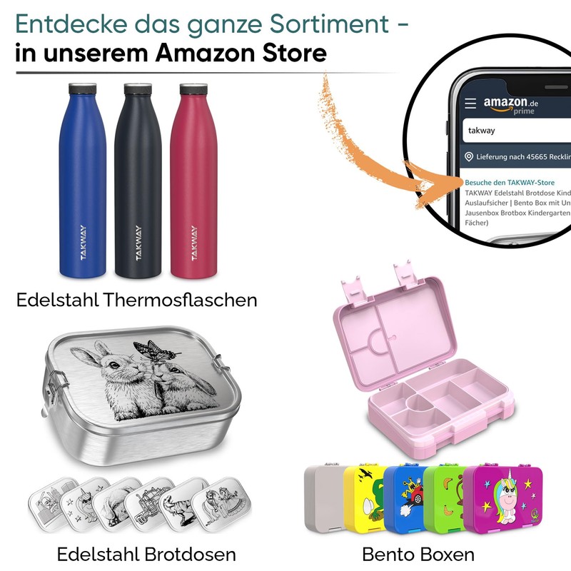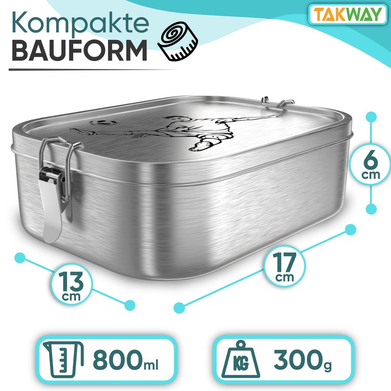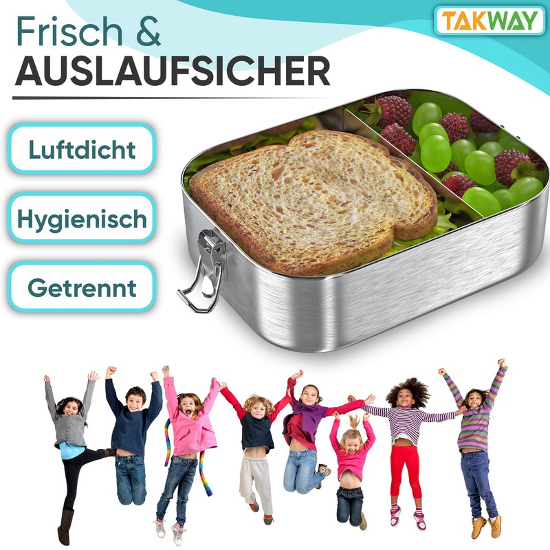 - Robust and completely safe: The TAKWAY lunch box with compartments is made of high-quality 18/8 stainless steel and is extremely robust. Of course, our lunch box is free from BPA or other harmful substances. All edges are carefully folded and polished so there are no sharp spots.