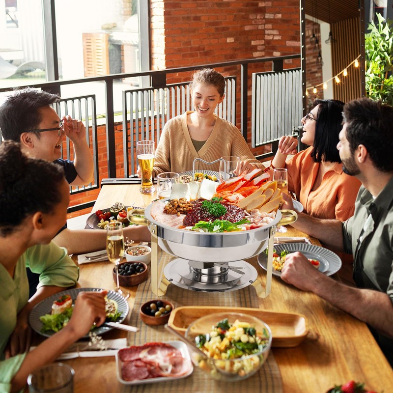 - 5-Quart Capacity Round Chafing Dish: With a generous 5-quart capacity, our chafing dishes can accommodate a large quantity of food. It's perfect for all occasions, from family dinners to business events. Easily serve a diverse array of dishes, including main courses, sides, soups, and more, ensuring there's plenty to go around