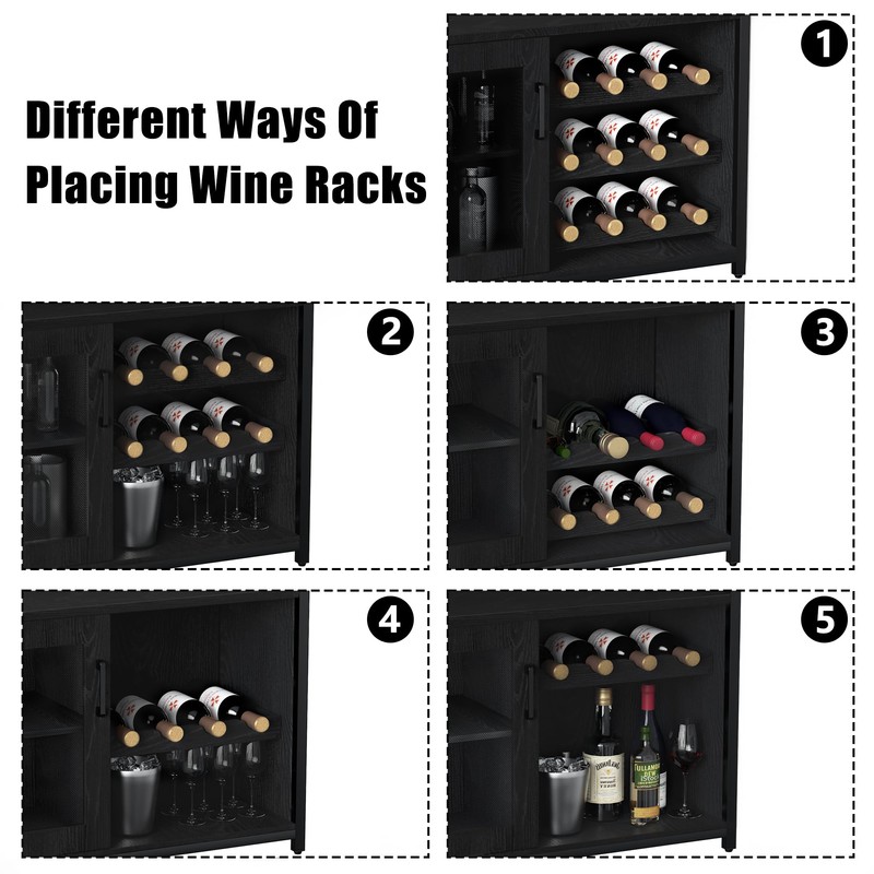 - 【Multifunctional Liquor Cabinet】Our wine rack comes with three detachable wine racks that can hold up to 12 bottles of wine. There is a detachable wine glass rack that can accommodate up to 9 glasses. Whether you choose to use it as a liquor cabinet or a sideboard, this cabinet will add practicality and style to your home.