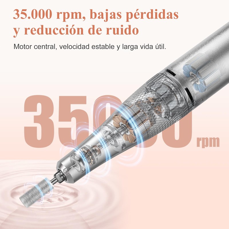 - 35000 RPM: Adecuado para principiantes y profesionales de salón, taladro de uñas ajustable con velocidad 0-35000 RPM para uñas acrílicas. Con poco calor, ruido y vibración, es potente pero lo suficientemente suave como para brindar una experiencia de manicura segura y efectiva.