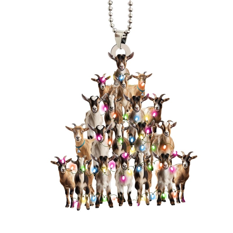 Talataca Goat 2D Flat Christmas Ornament, Goat Farm Animal Christmas Pine Tree Shape with String Light Pine Tree Decor, Hanging House Charm Eve Keepsake, Car Rear View Mirror Accessories, Xmas Gift