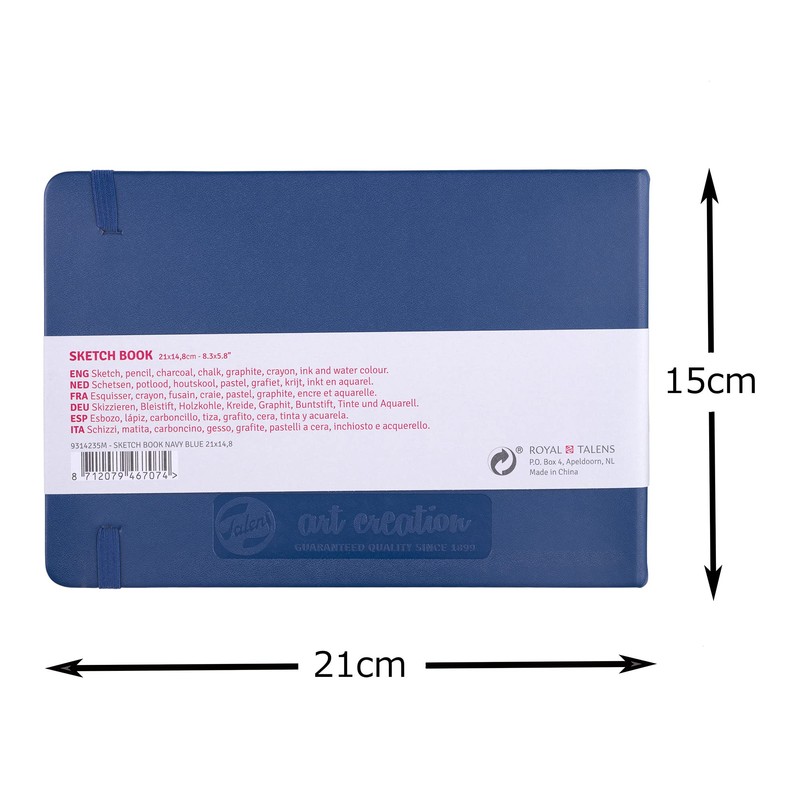 Talens Japan T9314-235M 452426 Art Creation Sketchbook, Drawing Notebook, 8.3 x 5.9 inches (21 x 15 cm), Navy Blue