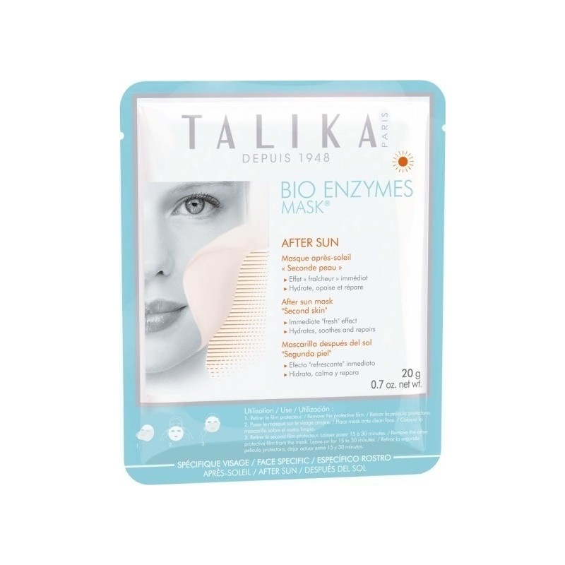 Talika Bio Enzymes Mask After Sun Mask Second Skin moisturizes, soothes and repairs the skin after sun exposure.