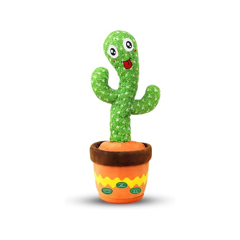 Talking and Dancing Cactus Toy, Mimics Sounds, Plays English Nursery Songs, USB Rechargeable, Soft Plush, LED Lights, Interactive Baby Gift for Boys and Girls
