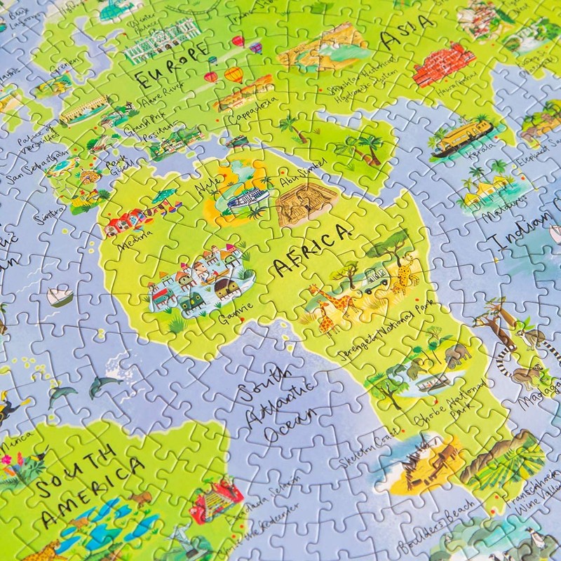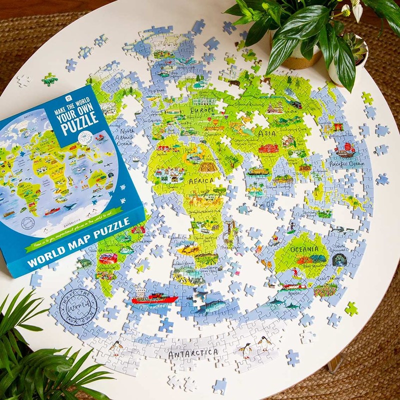 - Test your geography knowledge with Talking Tables 1000-Piece Circular World Map Puzzle. This unique Map Puzzle features landmarks from across the globe. Our Jigsaw Puzzles For Adults make for fun indoor activities and can be framed as wall art