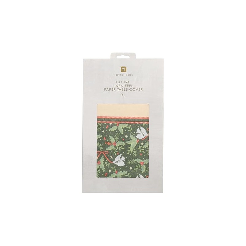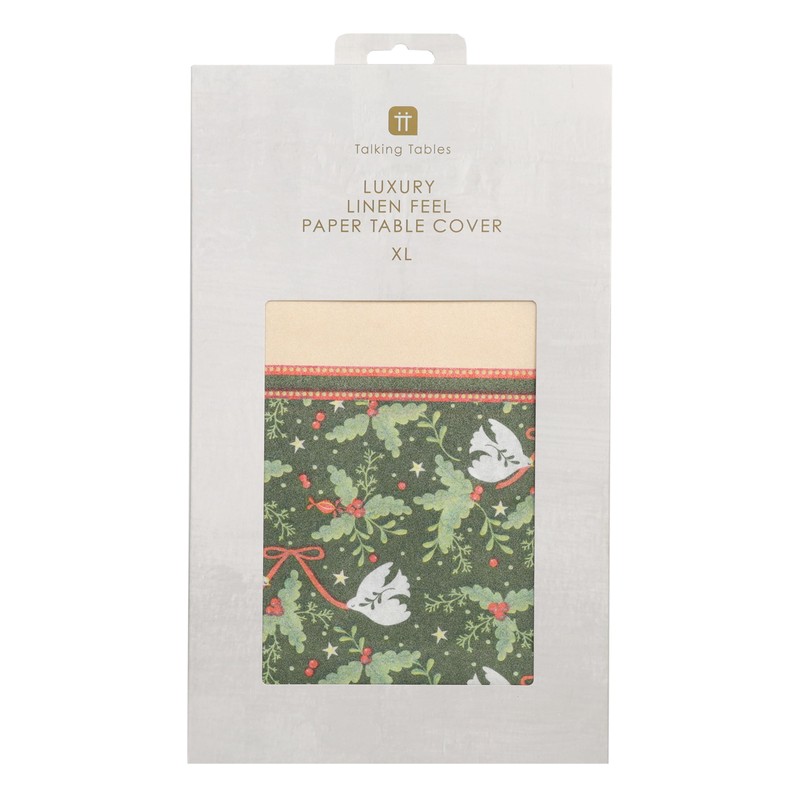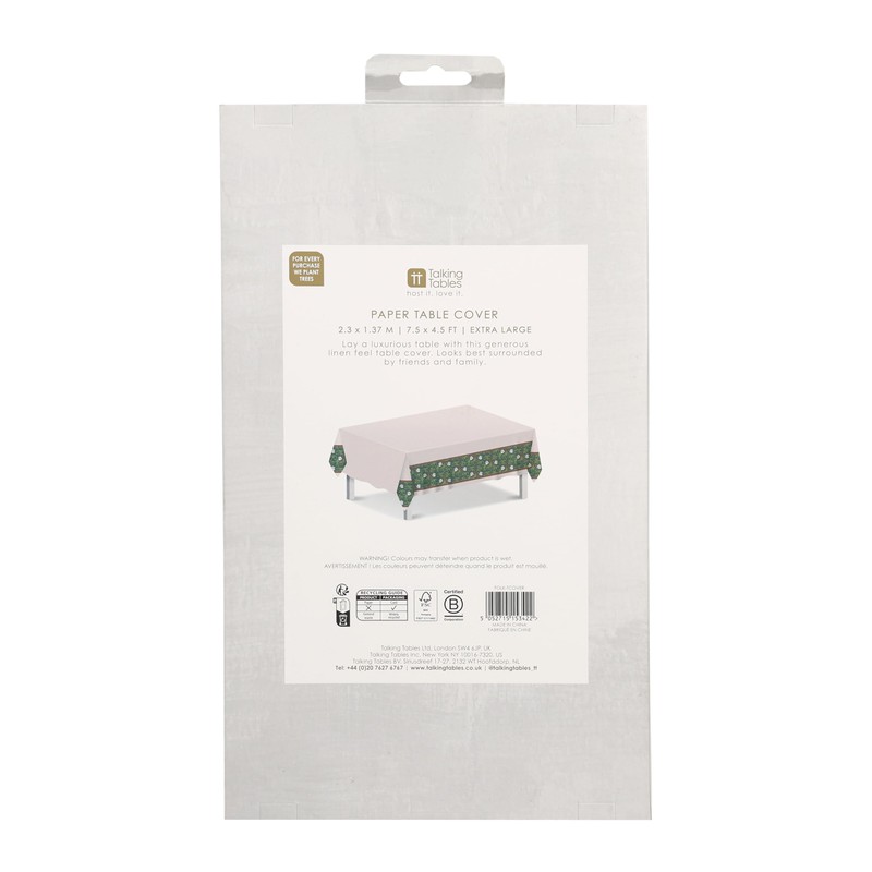 - Talking Tables Folklore Green Christmas Paper Table Cover 230cm x 137cm for Birthday Party, Wedding, Catering, Restaurant, Anniversary Disposable Linen Feel Tablecloth