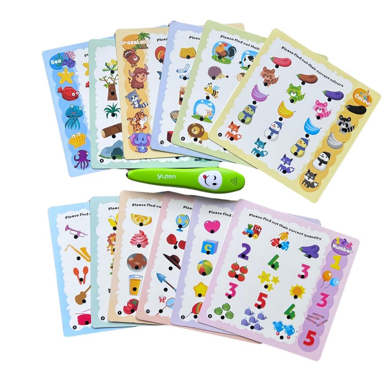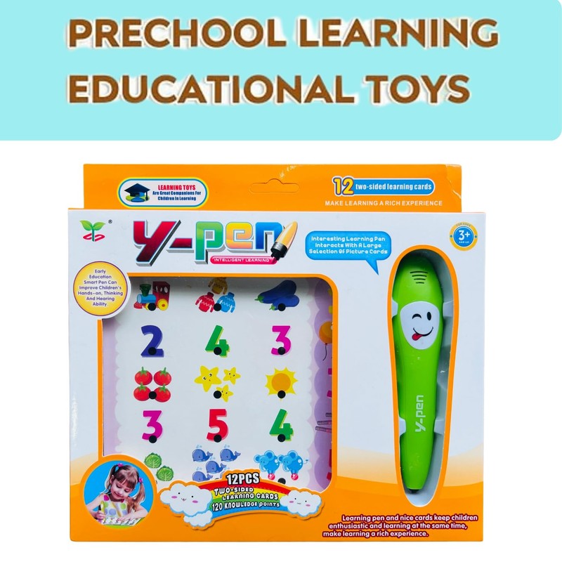 Talking Toy English Y-pen for Kids talking Pen Learning Machine Toys, Early Educational 12 double sided cards with 120 learning points, Preschool Learning Activities, birthday gifts for 3 4 5 Year Old