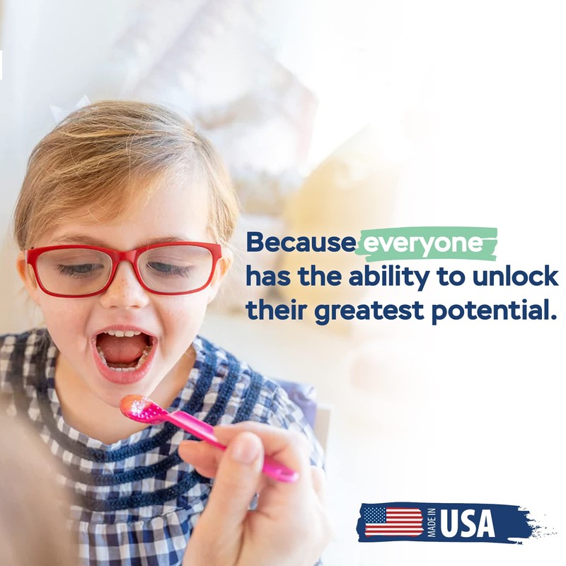 - Aumenta la conciencia sensorial mientras fomenta el redondeo de los labios.