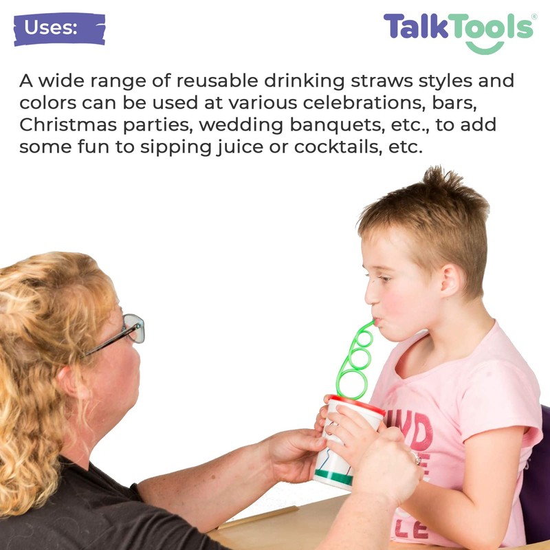- Incluye una de cada popote (pajita) en la jerarquía de la pajita de TalkTools (los colores pueden variar), una pajita de repuesto #1, dos bloques de labios y un folleto de instrucciones original de TalkTools