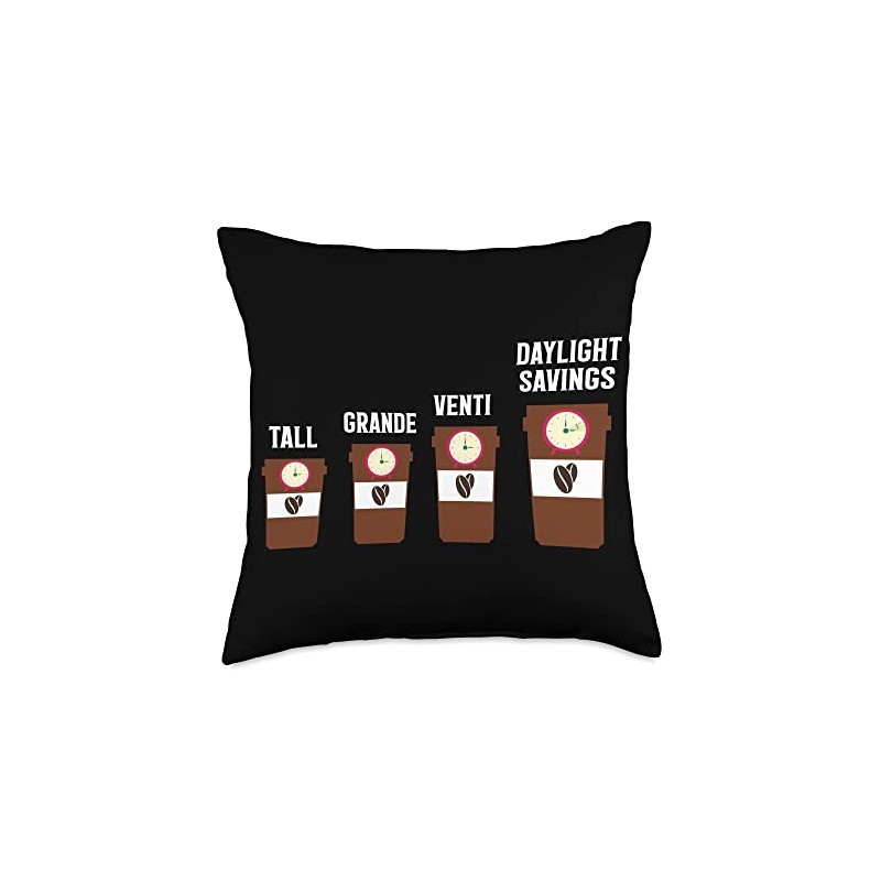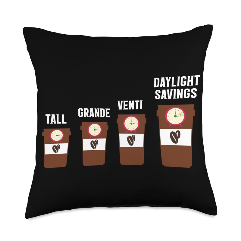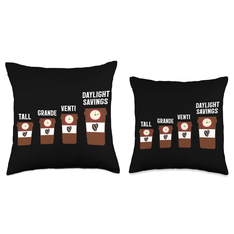 Tall Grande Venti Daylight Savings Coffee Java Tall Grande Venti Daylight Savings Throw Pillow, 18x18, Multicolor