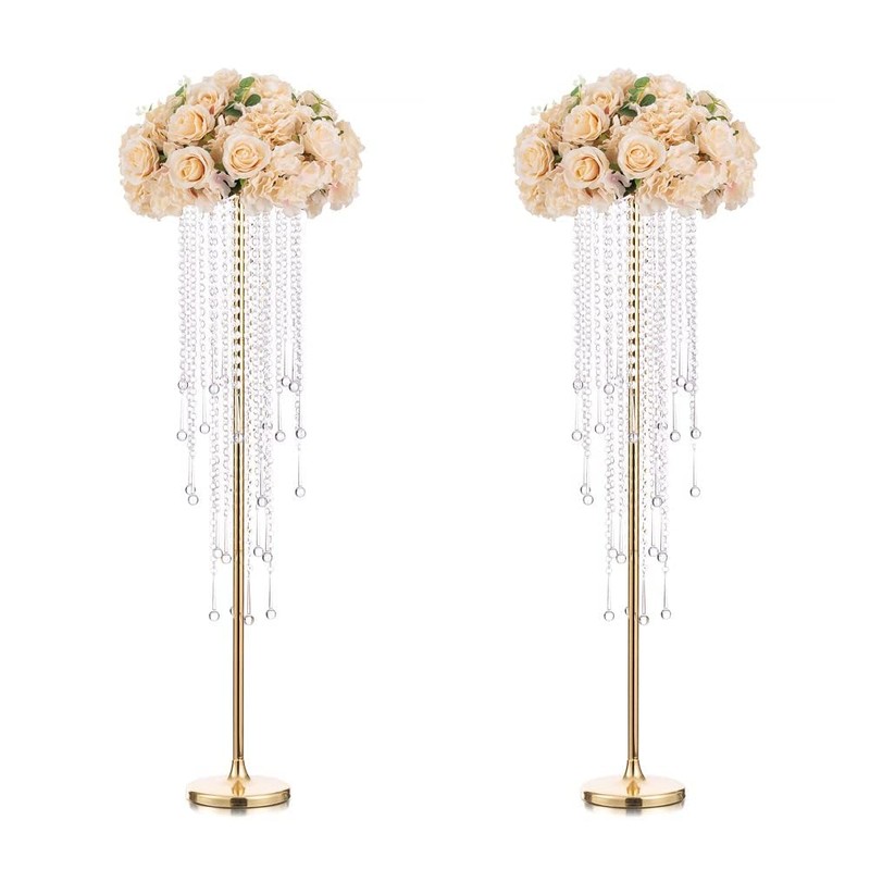 - Sparkle Crystal Chains & Elegant Design: Inweder gold flower vase has a variety of crystal chains of different lengths, and each crystal chain has a crystal pendant to add extra sparkle to make your wedding, party, or home more luxurious. And the simple and classic long pole design makes this gold vase for centerpieces elegant, you can put flowers, artificial flower balls, or other decorations on top. We also provide artificial flower balls in inweder store, which match this gold vase.