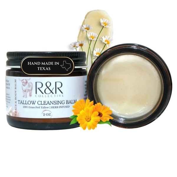 Tallow Cleansing Balm- All Natural Make-Up Remover Oil Based Cleanser. 100% Grass Fed Beef Tallow for Skin Care - 2 FL. oz