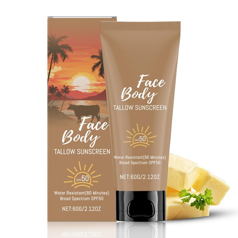 Tallow Sunscreen SPF 50+ Broad Spectrum, Face Body Sunscreen, Beef Tallow Skincare, Water Resistant, 60g