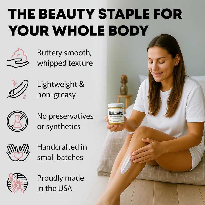 - LIGHTWEIGHT WHIPPED TEXTURE - Experience the silky, whipped texture of this whipped beef tallow and honey balm. It absorbs quickly without leaving any greasy residue, delivering moisture and comfort. A must-have beef tallow face moisturizer that feels light on the skin.