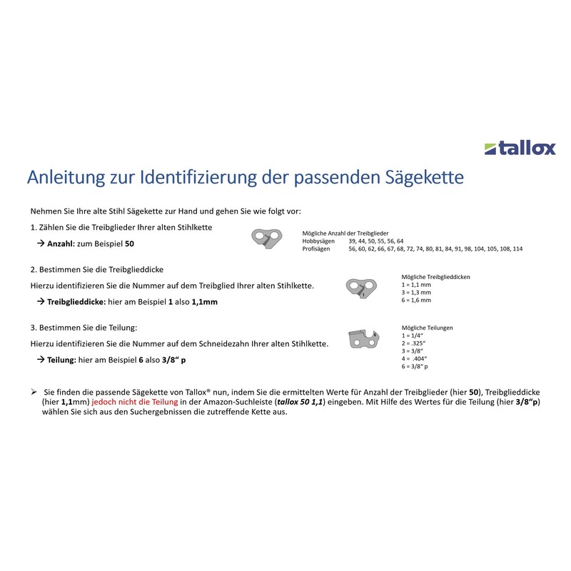 Tallox Saw Chain, 0.95 cm, 1.3 mm, 44 TG, 30 cm, Blade Compatible with Stihl Chainsaws