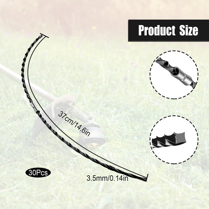- Proper Size The grass trimmer replacement line is 3.5mm in diameter and is 37cm long, fits perfectly into the line hole and provides a wider cut. The square spiral structure has better flexibility and durability.