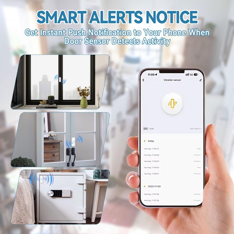 - REAL-TIME MONITORING: The vibration sensor provides real-time monitoring by sending push notifications to your smartphone when it detects vibration or movement. Equipped with the for Smart Life app, you can stay connected to the safety of your home at all times. The sensor also has a red indicator light that flashes when a vibration is detected.