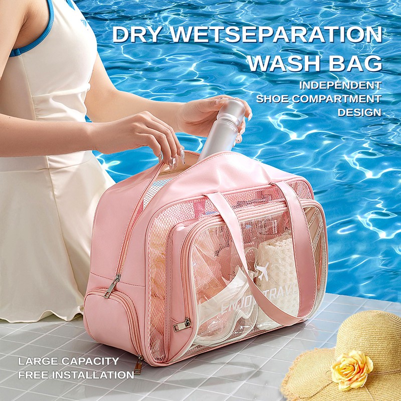 - Separate Dry & Wet: Two compartments—sealed dry section for cosmetics, breathable wet section for swimsuits/towels to prevent odors; three-compartment option adds a slipper slot for beach comfort.