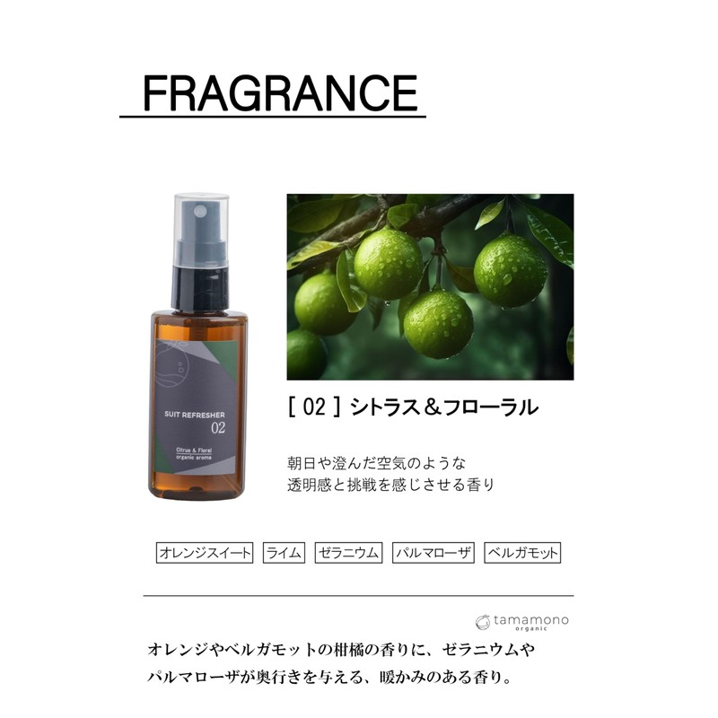 Tamamono Organic Suit Refresher Suit Deodorizing Aroma Mist Pillow Mist Essential Oil 1.7 fl oz (50 ml) (Citrus & Floral)