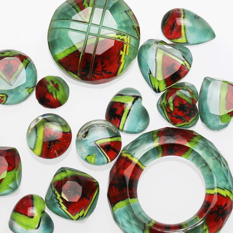 レモンシリーズ(青): レモンの輪切りをイメージして描きました。 黒のバッテンがそれです。 絵の具の濃淡が味わい深く、いたずら書きのような不揃いなところがポイントです。 切り取る部分がそれぞれ違うので、パーツがいくつか重なるとひと味違った印象を楽しめます。 水色と赤の組み合わせがアニメのような色合いでかわいいです。 赤珊瑚やアマゾナイトと相性が良く、元気が出そうなアクセサリーが出来上がりました。