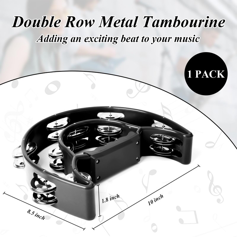 - Premium Quality: Our tambourine is made with high-quality materials, featuring double row metal jingles that produce a crisp and clear sound. It is built to last and withstand regular use. The stylish design makes it visually appealing and a great addition to your musical instrument collection.