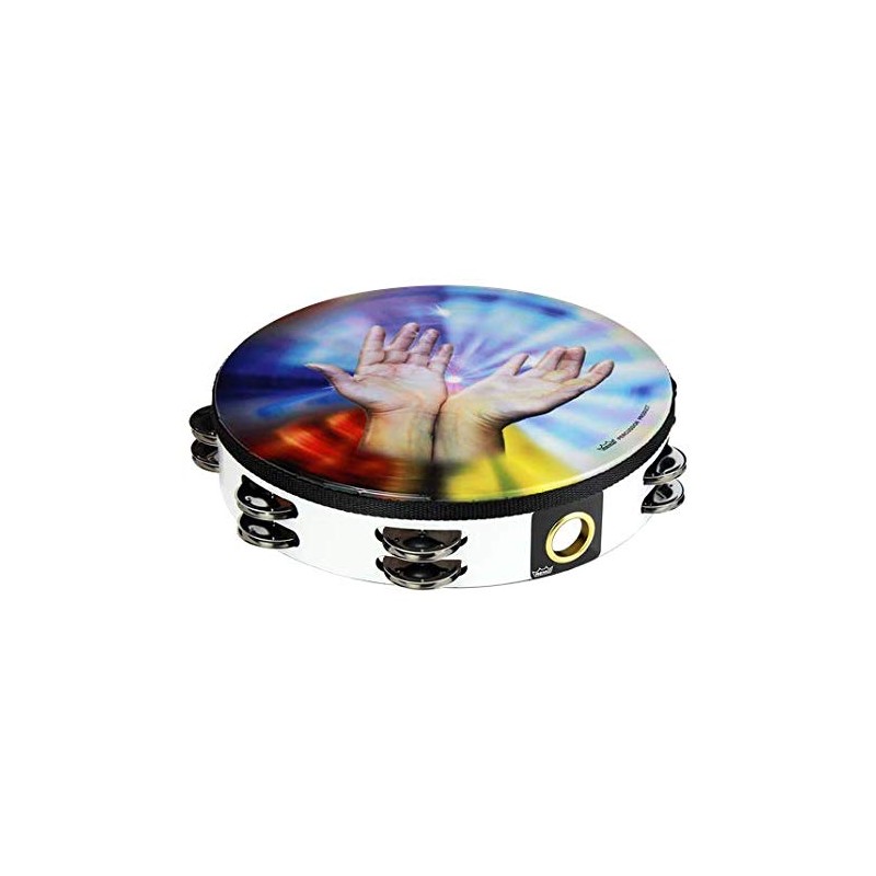 Tambourine, Praise, 10" Diameter, 8 Pairs Jingles x 2 Rows, Sharing Hands