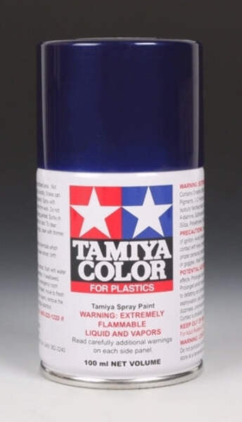 Tamiya 85053 TS-53 Lacquer Spray Paint 100ml Deep Blue Metallic 100ml Deep Blue Metallic Tamiya TS spray paint is a synthetic lacquer that cures in a short period of time. The spray paint is extremely useful for painting large model surfaces. Tamiya spray paints are not affected by acrylic or enamel paints. Therefore, following the painting of the entire assembly, details can be added or picked out using enamel and/or acrylic paints. Each can contains 100ml of paint, which is enough to fully cover 2 or 3, 1/24 scale sized car model bodies. NOTE: TAMIYA TS paint is not designed to be used with clear Polycarbonate/LEXAN R/C body shells. The paint will flake off. For Polycarbonate applications please use Tamiya PS spray paint.