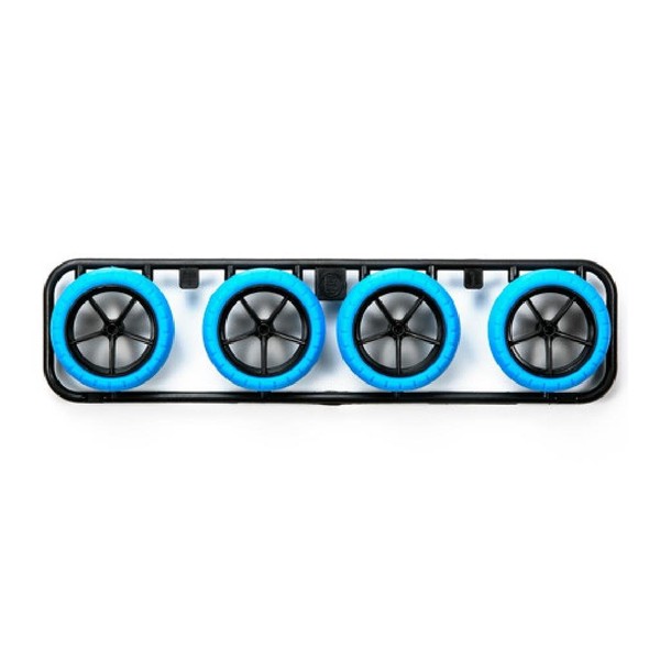 - A set of blue hard-barrel tires with high-strength carbon fiber-blend nylon resin narrow wheels.- Tire set designed for technical courses with lots of corners. Features low resistance to road surfaces. -Compatible 4WD Models: Mini 4WD Pro and other Mini 4WDs with large-diameter tires (some models require a portion of the body to be modified).