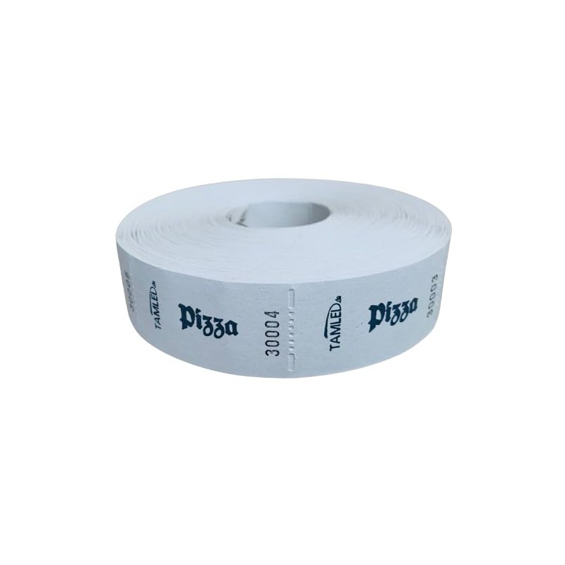 TAMLED Pizza receipt roll, white, 1 roll with 1000 perforated tear-offs, sequentially numbered, catering brands, festival, drinks, catering, events, company event, folk festival, club festival, token