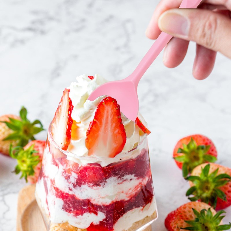 Tamnjvrr Pack of 100 Pink Extra-Heavy Weight Disposable Plastic Spoons Disposable Flatware Silverware for Soup Dessert Ice Cream Take Out Spoon
