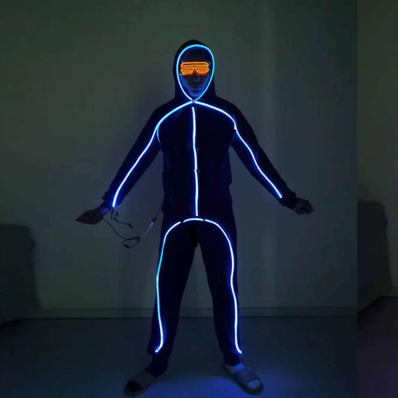 TAMNQKASS Led light up suit Dance Costume Robot Suit, Halloweenglow sticks luminous performance light up glow stick costume (Stickman Glow Suit, Large)
