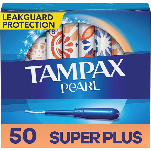Tampax Tampax Pearl Tampons Super Plus Absorbency, with Leakguard Braid, Unscented, 50 Count