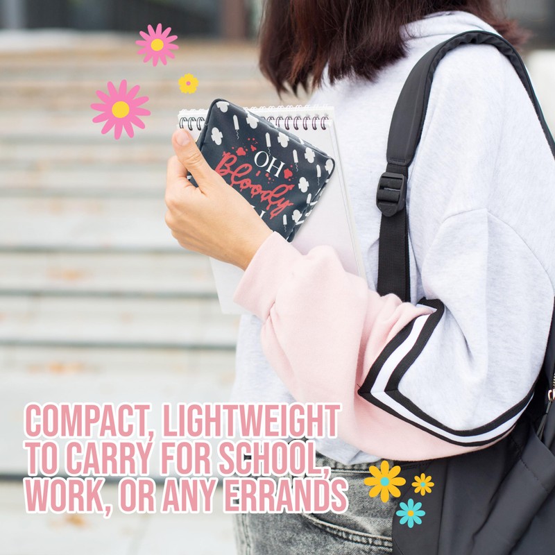 - Portable, Compact & Waterproof - This compact black bag (13x13x3cm) is perfect as a period bag for teen for school, neatly storing tampons, pads, and other feminine products discreetly.