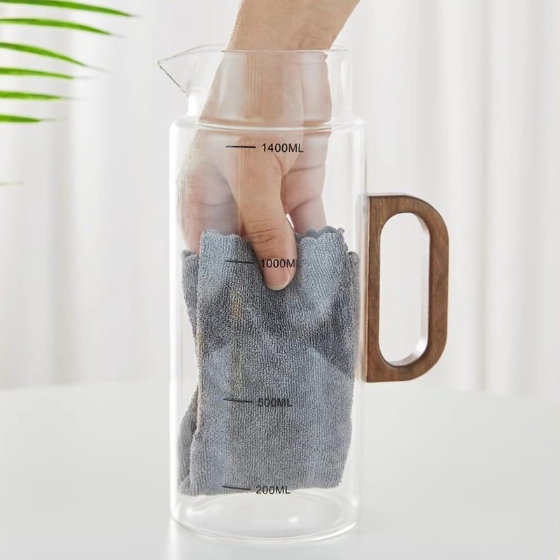 • Cozy Aesthetic: The combination of glass and wood creates a charming, rustic look that enhances any setting, from the modern kitchen to the rustic cabin. This pitcher is not just a functional item but also a beautiful addition to your daily life.