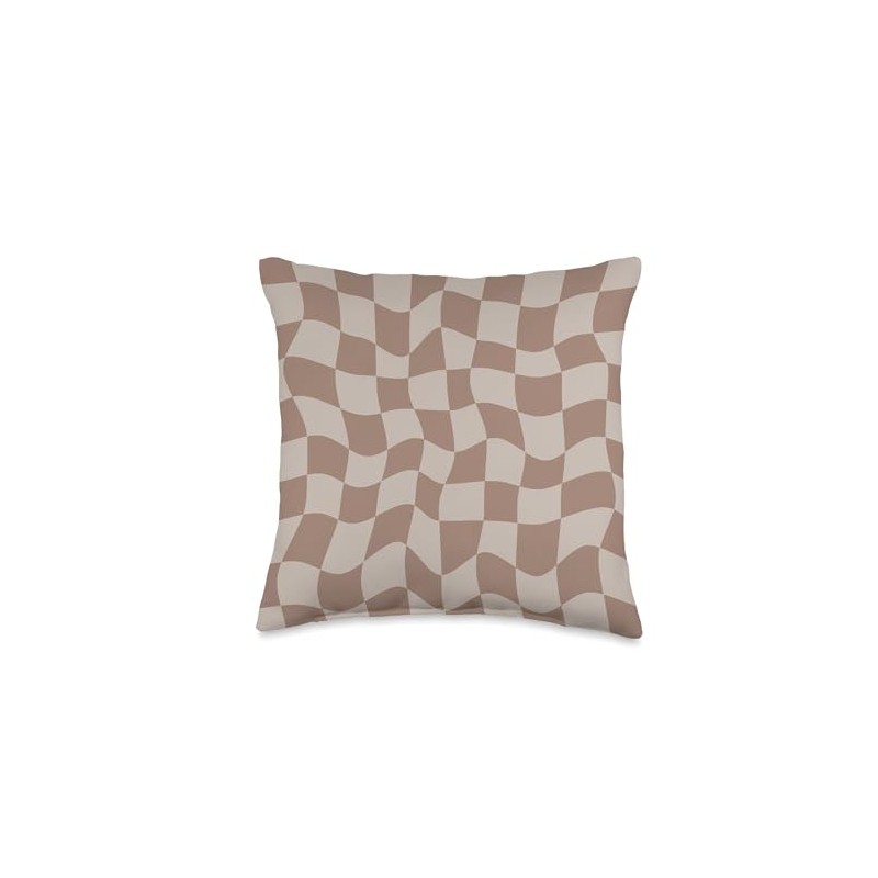 Tan Brown Twisted Checkerboard Pattern Chess Wavy Checkered Throw Pillow