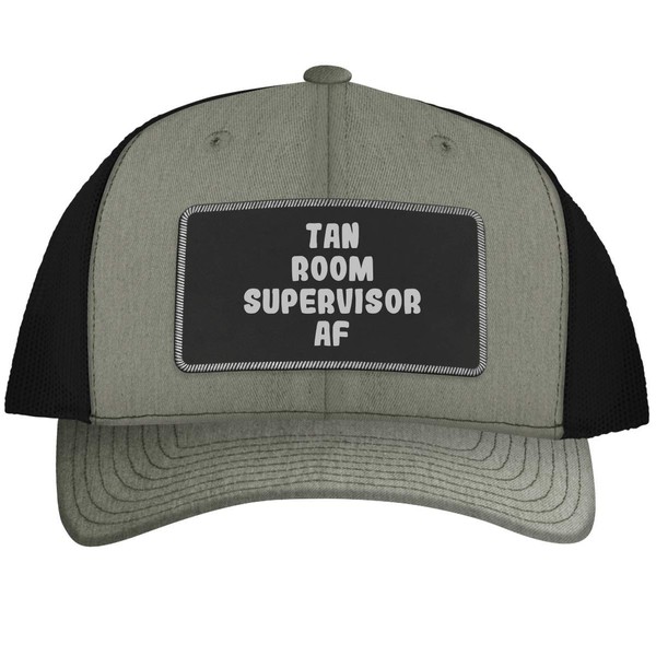 Tan Room Supervisor AF - Leather Black Patch Engraved Trucker Hat, Heather-Bl...