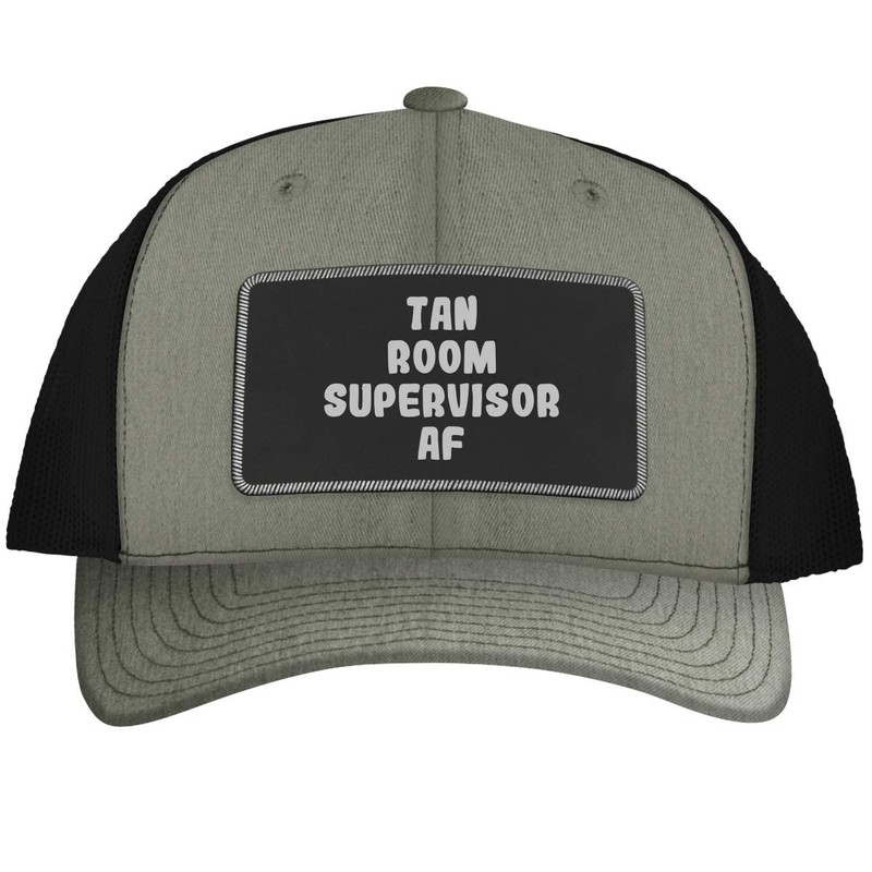 Tan Room Supervisor AF - Leather Black Patch Engraved Trucker Hat, Heather-Black, One Size