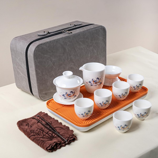 Tandarui Chinese Tea Set Gaiwan Tea Set Chinese White Jade Travel Tea Set Japanese Tea Set 6 cups Portable Tea Set Home,Traveling(Travel-LH)