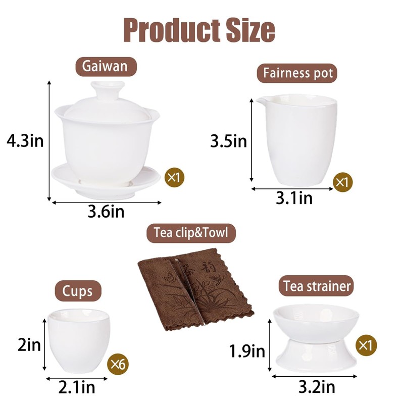 - Versatile Use:Includes 6 cups,1 fair pot,1 gaiwan,1 tea towel,1 tea strainer,1 stainless steel tea clips,1 travel bag and 1 plastics tea tray.Everything you need for a perfect tea session, whether at home or on the go.