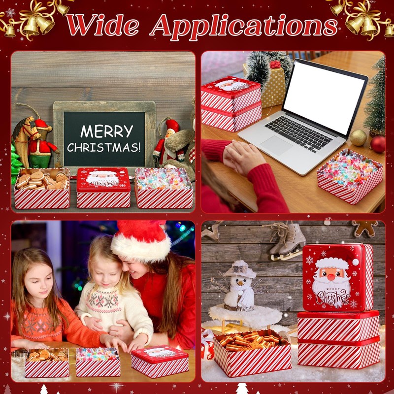 - Wide Application: these Xmas tin containers are versatile and suitable for you to spend quality time with your friends and family, baking, decorating, and creating masterpieces; Ideal for storing various foods and decorations such as candies, cookies, chocolates, hair cards, greeting cards, and more