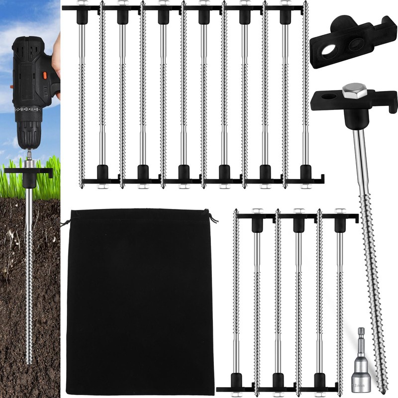 - Easy to Use: our threaded tent stakes have pointed tips, which are easy to put in the ground and to pull up on various terrains, the spiral design offers a strong grip; With the help of a cordless drill or impact driver, these tent spikes will have your canopies, tents, awnings, gazebos, picnic mats, guy lines, or tarps grasp the ground in a second