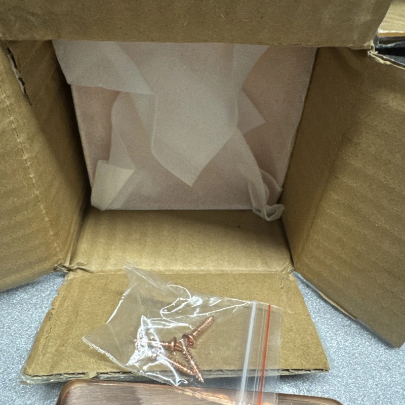 Brand new in the box comes as a set of 2 and includes copper screws. These are 4x4 in size and there is 2 in the box.