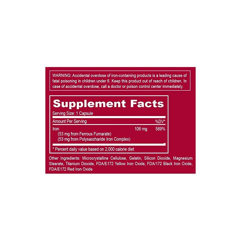 Provides 106 mg of Elemental Iron Easy to Swallow Capsule High Tolerability Odorless and Tasteless Gluten Free