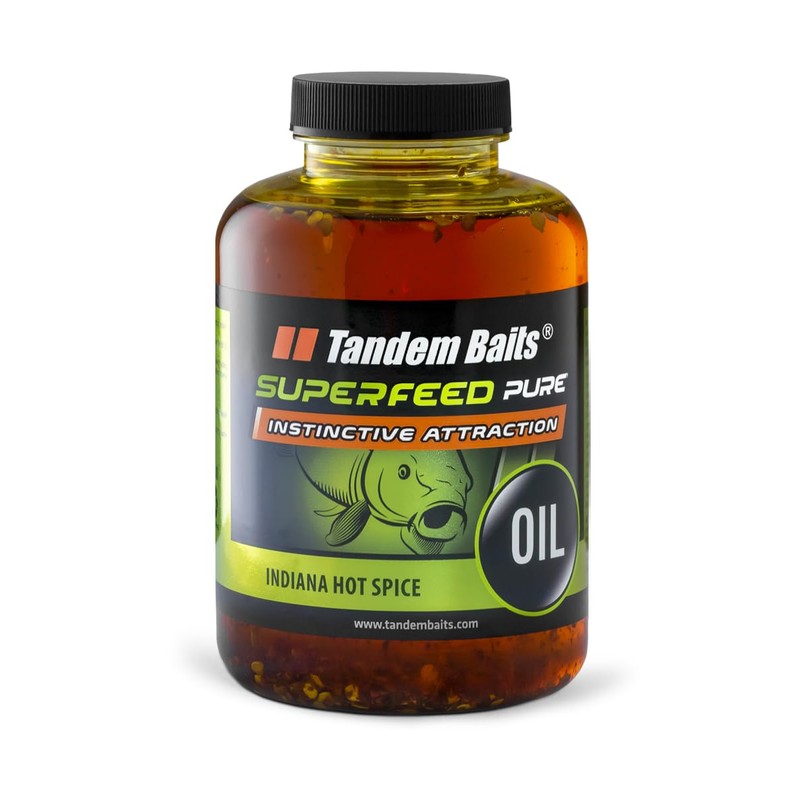 - SUPERFEED FISHING OIL INDIANA HOT SPICE - natural oil with an intense aroma is an extremely effective attractor for carp. Ideal for all mixes, stick mixes, grains, pellets, groundbait etc. An excellent source of energy for fish, irreplaceable at times when carp are looking for high-energy food - before spawning and in winter. It attracts predatory fish, ideal for dead bait fishing. The oil is an excellent additive for making handmade boilies: 20/30 ml per 1 kg.