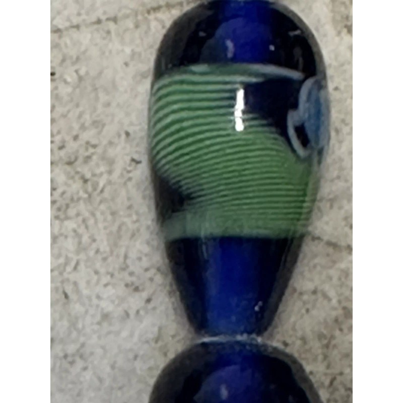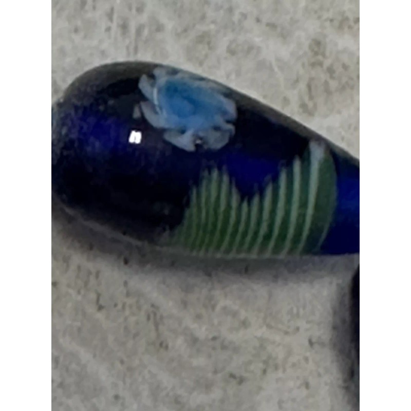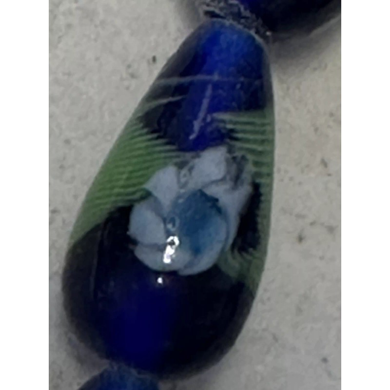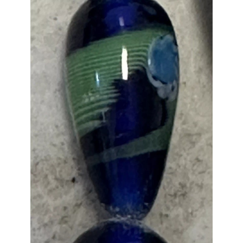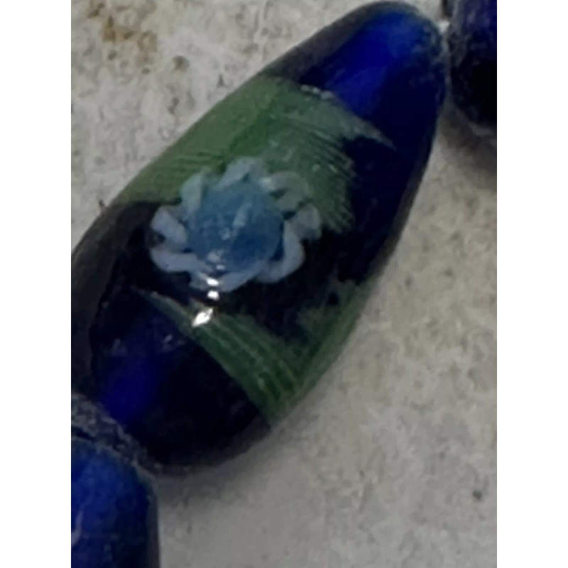 Tandy Leather & Crafts Milifiori Beads dark Blue 14x10mm 19 Beads 1 Strand drop Handmade glass Beads.