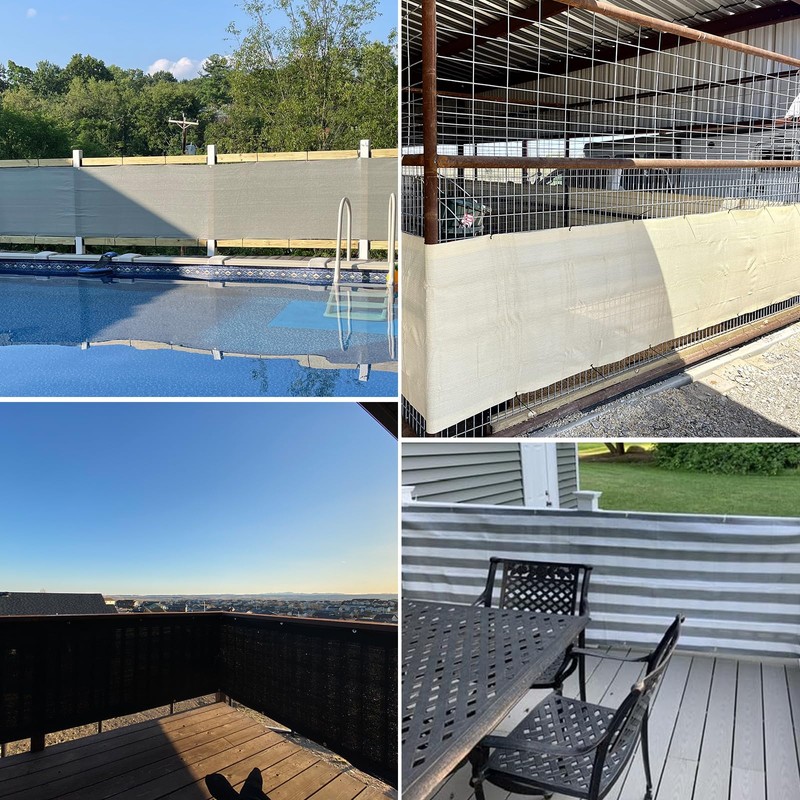 - Robust and Versatile Barrier: 95% visibility blocking. Keeps outsiders from peering in, protects your safety, blocks dogs from barking at other animals. Allows breeze and light to pass through but is not affected by high winds, blocks harmful UV rays.