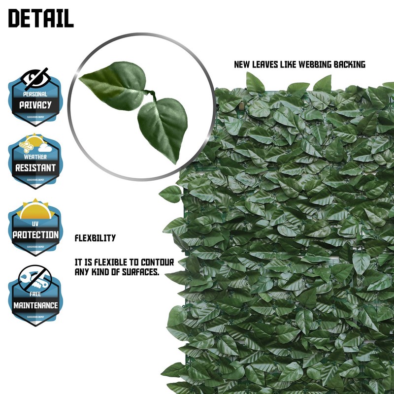 - Full Coverd: The added mesh backing sets our product apart from similar products and provides users more privacy. The leaves are tightly packed together and will not fall out from the weather. UV resistant and maintenance free. The leaves are bright and vivid in color, not easy to fade.